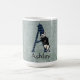 Den vita dryckesvarudesignen för Alice i Wonderland älskare i alla åldrar har huvudformen brev/inledande A med svart och blå harlequin fyllning och originalillustration av vitkanin som har färgats, på en tryckt blommigt av vintagen och handskriftsblå tonad bakgrund. Anpassa till namn eller annat meddelande