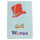 Willy Wonka & Chocolate Factory | Roligt grafik över Willy Wonkas koniska röda top hat och bukslips, med namn Wonka med peppermint candy brev ’o’.
