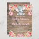 Wood elefantbaby shower för blom- lantlig rosa inbjudningar