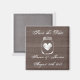 Chicen för träspannmål land Mason burk spara datum magneter för bröllopsfest. Vintagens personlig med namn av brud och dagg plus datum för giftermål. Bakgrund till bruna träpaneler. Perfekt för den orustiska utomhusträdgården/lada bröllop under sommaren, june, july, augustín, september. Skripttypografi för elegantens snyggt. Hjärteikon. Söt nödlidande västerut stil. Klassmagneter för snart gifta par gifter sig.