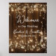 Välkomstskylt för Wood Rustic White Blommigt String Ljus Bröllop - Denna elegant brunträ och vita välkomstskylt med vackra ljus och vit blommigt kan vara personlig med informationen från Bröllop. (produkten är faktiskt inte gjord av trä)