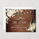 Wood Vit ros Rustic Bröllop spara datum Vykort