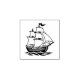 Black and white illustration of an old galleon-style wooden sailing ship.