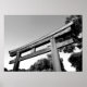 Under nyårsperioden besöker ungefär 3 miljoner människor Meiji Shrine i Tokyo i Japan. Shinto-shrine byggdes 1920 och är en av de mest populära i land. Ett stiliserat, svart och vitt foto av en av de 40 fot långa, grind (torii), som är dekorerat med vapenskölden krysanthemum av Emperor Meiji.