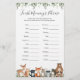 Skogsdjur: babyduschen avslutar mamma-spelkortet med en vattenfärgsbild av trädsdjur och vattenfärgsgrey eucalyptus garland och elegant handskrivet stil-typsnitt.