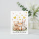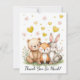Complete your woodland-themed celebration with this adorable thank you card featuring a sweet bear, fox, and bunny surrounded by soft pastel watercolor florals and floating hearts.