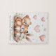 Celebrate your little explorer with this personalized Woodland Adventure puzzle! Featuring adorable brown bear, orange fox, and grey bunny friends surrounded by pink floating hearts and flowers in soft pastel colors, this keepsake puzzle is perfect for birthdays, gifts, and party celebrations.