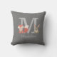 Stängkudde med en skogräv och kanin bredvid en personlig monogram initial och namn. Den omvända karaktären hos skogsmark lämnar spridd på skifferbakgrunden grått. Perfekt för en liten ynglings- eller sovrum. Designad av Thisisnotme©