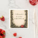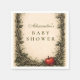 This charming baby shower design features an illustrated woodland storybook frame with twisting branches, delicate blossoms, soft greenery, and a whimsical red apple accent set against a warm parchment background. The vintage-inspired artwork and gentle earthy tones create a cozy, magical aesthetic that feels timeless and inviting, perfect for a storybook-themed celebration with a natural, fairytale-like charm.