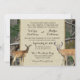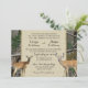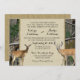 Rustic och roligt woodland hjort icke-traditionell bröllopsinbjudan. Buck och doe med en natur som äger träd och löv kamouflage och land-karmen av sammanbrott.