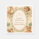 This charming woodland baby shower design features adorable forest animals gathered around a delicate vintage frame, creating a warm storybook scene perfect for celebrating a little one on the way. Sweet illustrations of a bunny, raccoon, squirrel, and owl are surrounded by tiny mushrooms, pinecones, wildflowers, and soft woodland greenery. The warm neutral palette and gentle watercolor style give the design a cozy, nostalgic nursery feel inspired by classic children’s book illustrations. Perfect for nature-themed baby showers, woodland celebrations, or rustic forest gatherings.