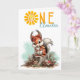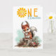 A charming woodland first birthday card featuring a cute squirrel sitting on a tree stump surrounded by pinecones and forest berries. This watercolor forest animal design is ideal for celebrating a baby’s first birthday and suits both boys and girls. Personalize the card with “ONE” and a name for a sweet and memorable birthday greeting.