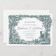 En silhuett, sage grönt woodland scen ramar din bröllopsinbjudan i stil. Med naturinspirerad konst avses en fawn, fåglar, räv och kanin med löv, blommor och frukt som göms inom ramen för mönstret. Ett modernt sökande efter ett populärt tema, perfekt för ett djur och ett naturområde älskare. Tuzi Williams unika konst och design.