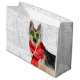 En roligt ord-konstens bakgrundspar med en tysk Shepherd-illustration som är klädd för årstiden på denna presentpåse för herdeshinnan och djurälskare.