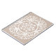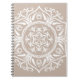 Denna vita mandala sitter på en ljusbrun eller brunt bakgrund. Färg är mjukt och naturligt. I vissa ljus kan det se ut som ett varmt grått. Del av Rosenn Mandala Collection.