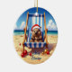 A Wombat, ett australiskt infödd djur i en festive Tomhare som kommer på en sandstrand med baubles God jul