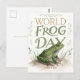 This elegant watercolor-style illustration celebrates World Frog Day with a realistic green frog poised on earthy ground, surrounded by soft botanical details. Refined typography highlights “World Frog Day” with the date March 20, blending natural tones and hand-painted textures. A calm, artistic nature-themed design inspired by wildlife appreciation, environmental awareness, and the beauty of amphibians.