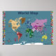 World Map För barn - Blue with Flaggor Poster