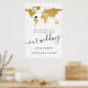 World Map Travel Bröllop Guld Välkomstskylt Poster