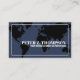 Ett modernt affärskort med bilden av ett svart karta i världen på en gråblå bakgrund