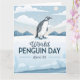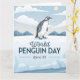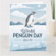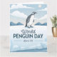This charming digital illustration celebrates World Penguin Day with a stylized penguin standing in a serene polar landscape. Cool blue tones, snowy textures, and a glowing moon create a calm winter atmosphere, while elegant typography highlights April 25. A nature-inspired artwork that captures the beauty of penguins, polar environments, and wildlife awareness in a playful yet refined style.