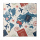 Classic travel-inspired pattern ceramic tile featuring passports, airplanes, travel stamps, compasses, and a light blue world map background. Ideal for travelers, aviation enthusiasts, adventure seekers, and anyone who loves wanderlust aesthetics.