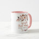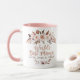 Världens bästa keramiska mugg med två ton i Mamma har en söt bohemisk blommigt. Ord "worlds best mamma" är skrivet i ett handskrivet ritstift för borho. Det här kaffet kopp gör perfekt Mors dag-presenten till din favoritmamma. Det är också en underbar gåva att presentera vid en babydusch. Klicka på Redigera design om du vill ändra färg och anpassa texten.