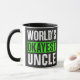 Världens okayestmorbror. Världen har ett versalt vitt svart sans-teckensnitt. Okayest i svart versalteckensnitt med nyare färgad på grönten. Du kan anpassa versalteckensnittet för morbror i vitt med ett annat ord eller en annan beskrivning.
