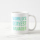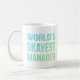 World's Okayest Manager i versaler sans-serif-teckensnittsbokstäver i gradient för turkos och grönt.