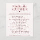 Add laughter and lively conversation to your celebration with this Modern Boho Floral “Would She Rather” Bridal Shower Game. Designed in soft beige with elegant typography and a delicate heart accent, this fully customizable stylish game card keeps guests engaged while guessing the bride’s favorite things. Perfect for modern, romantic showers, it coordinates beautifully with the Boho Floral Bridal Shower Game Collection and creates a fun, memorable moment for everyone.
