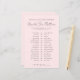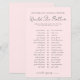 The design features a soft blush pink background on both sides, creating a warm and cohesive look while keeping the layout simple and easy to read. Elegant dark gray fonts in a mix of script and classic serif typography keep the style minimal yet sophisticated, making it versatile for any bridal shower theme.