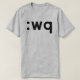 Många programmerare och systemadministratörer använder Vi/Vim för att redigera text, och att veta alla viktigt befaller utantill. Nya användare, speciellt de vänja sig till GUIs, gäckas ofta av text-endastanvändaren har kontakt. Denna design består enkelt av texten ": wq" i en djärv svart stilsort. Den hjälper dig att minnas hur man sparar (skrivan) spara, och att gå ut (den avslutade) redaktören, som är nödvändig, om inte du önskar alltid att frambringa ett slumpmässigt stränger. Designen är tillgänglig i svart på grå färg och flera andra skjortafärger.