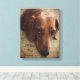En hund med ledsens ögonögon för ett porträtt. Fotot har en fingerad bakgrund som ser ut som en fläck med grumliga högdagrar. Anpassningsbarna läser, följ dina drömmar.