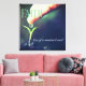 Den här inslagna kanvas-väggkonsten är täckt av ett foto av en ömtålig grönt som går ut från jorden. En skonsam människa med en droppe dagg över toppen av gröntens frötäktsområde med en bildtext i övre hörnet av "Faith" med texten "storlek av senapsfrö" nära grund. Grönt toner. Anpassa eller köpa som designat. lagrar-bild freepik.com