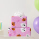 A cute hand drawn illustration of festive blend of ghosts and pumpkins on a vibrant pink background, evoking a playful Halloween spirit.