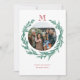 This simple yet beautiful card features your family photo, in a cedar wreath with a monogram at the top. Add your information using the template form. Use the advanced editing menus to change the font and layout and to add text and photos to the back of the card.