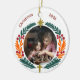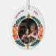 Celebrate faith and family together with this elegant wreath-framed design featuring a symbolic cross and vibrant botanical accents. The circular foliage border in rich greens, warm oranges, and festive red berries creates a perfect frame for your cherished photo, while the gold cross and star add meaningful Christian symbolism. Easily update the template by replacing the front and back images with two different family pictures and all texts front and back to make it a unique holiday keepsake. Ideal for Christmas trees, Thanksgiving, Easter celebrations, baptisms, or as a thoughtful religious gift.