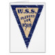 W.S., Krig Savings Frimärke poster från 1918. W.S. var det första världskrigets krig-obligationer. En inverterad triangel med ord W.S.S. utlovade 1918 i mitten. Konstruktionen har varit lätt tryckt.