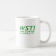 Mugg med WSTJ-logotypen i grönt på en sida.