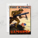 världskrig 1 poster från den brittiska marinkåren som skildrar marinerna "över toppen" i en avgift från deras förstahandsskyttar. Poster " Först i Frankrike - USA:s marinsoldater "