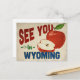 Ett charmerande Wyoming vintage resor-vykort med ett fint rött äpple, tillsammans med roligt retro stil som säger: "Vi ses i Wyoming"