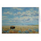 En ensam bison står på slätterna under ett molnprickat himlar, avlägsna berg blå i bakgrunden. Den här bilden kommer från en originalbild av brans oljemålning genom att belöna den vinnande Colorado-konstnären Debra Mickelson.