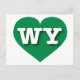 Det här vykortet har ett pulserande hjärta av grönt som innehåller det feta, vita, övre fodral brev WY, förkortningen officiell för Wyoming, cowboystaten. Kortets baksida är tom och väntar på personligens text eller handskrivna känslor.