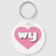 Den här nyckelkedjan har en lugn, coola rosa hjärta som innehåller det feta, vita, rundade, nedre brev wy, en lekfull förkortning för Wyoming, jämlikhetstillståndet.