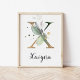 X Bokstavsmonogram Greenery Nursery Namnskylt Vägg Poster