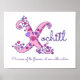 Söt X monogramkonst namn poster perfekt för ett flickrum i skuggor av rosa, lila och mörk blått på en vit bakgrund som kan ändras vid behov. Personalisera med din egen namn från X, och namn betyder att personligen ska röra till ditt sovrum, lekrum eller förskola. Det här exemplet gäller blommornas prinsessa namn Xaria, på naturens sida. Cute poster utskrift som passar perfekt för en nyfödd bebis-, ristening- eller babyduschpresent. © Unique X monogram-hjärtan och blommor teckning beskrivning och grafisk konsdesign av Sarah Trett. www.sarahtrett.com för www.mylittleeden.com