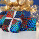 Xadrez azul, laranja, fejk sujo ou manchado. presentpapper
