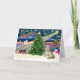 Christmas Magic with a Lhasa Apso shows the star of Bethlehem guiding three wise men while Santa and his reindeer fly into the night and a dove of peace hovers in the star light. A Christmas tree and snowman add to the symbols of the holiday season.