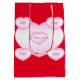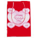 Anpassad presentväska från Lycklig Valentine har rosa hjärta i röd bakgrund och Lycklig valentintext för dig och dina nära och kära