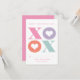 Denna moderna klassrums valentine-kort av Stacey Meacham har stora alternerande Herbert-färger eller rosa, lila, orange och mint xoxo-typ med hjärtan i o:et i en fyrkantig form på vit bakgrund. Det är djärvt och grafiskt. Perfekt för den moderna, kunniga köparen.